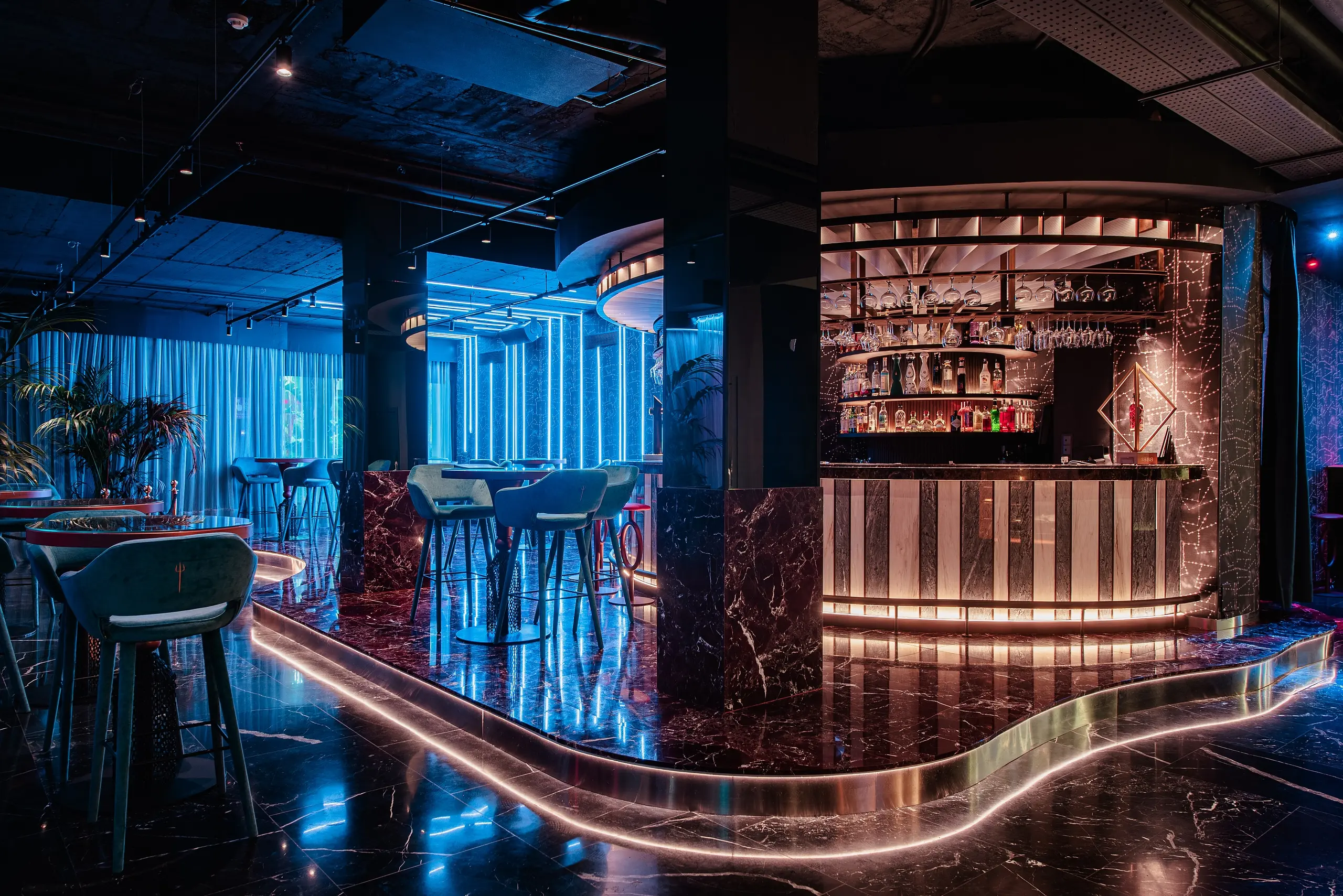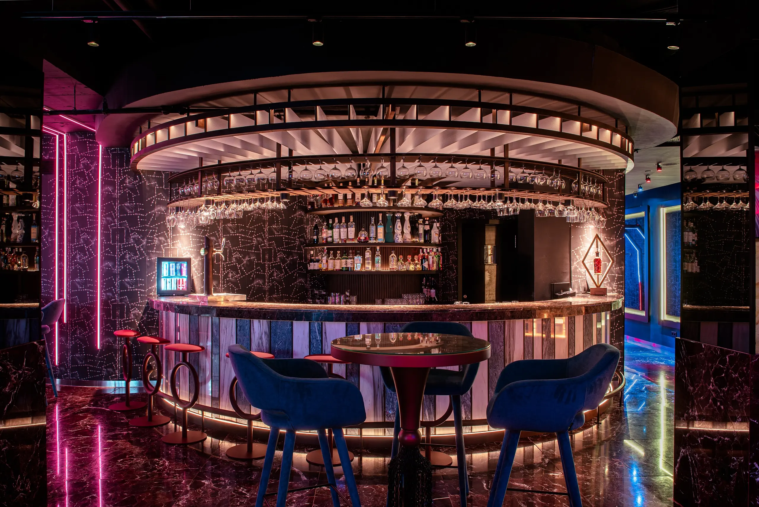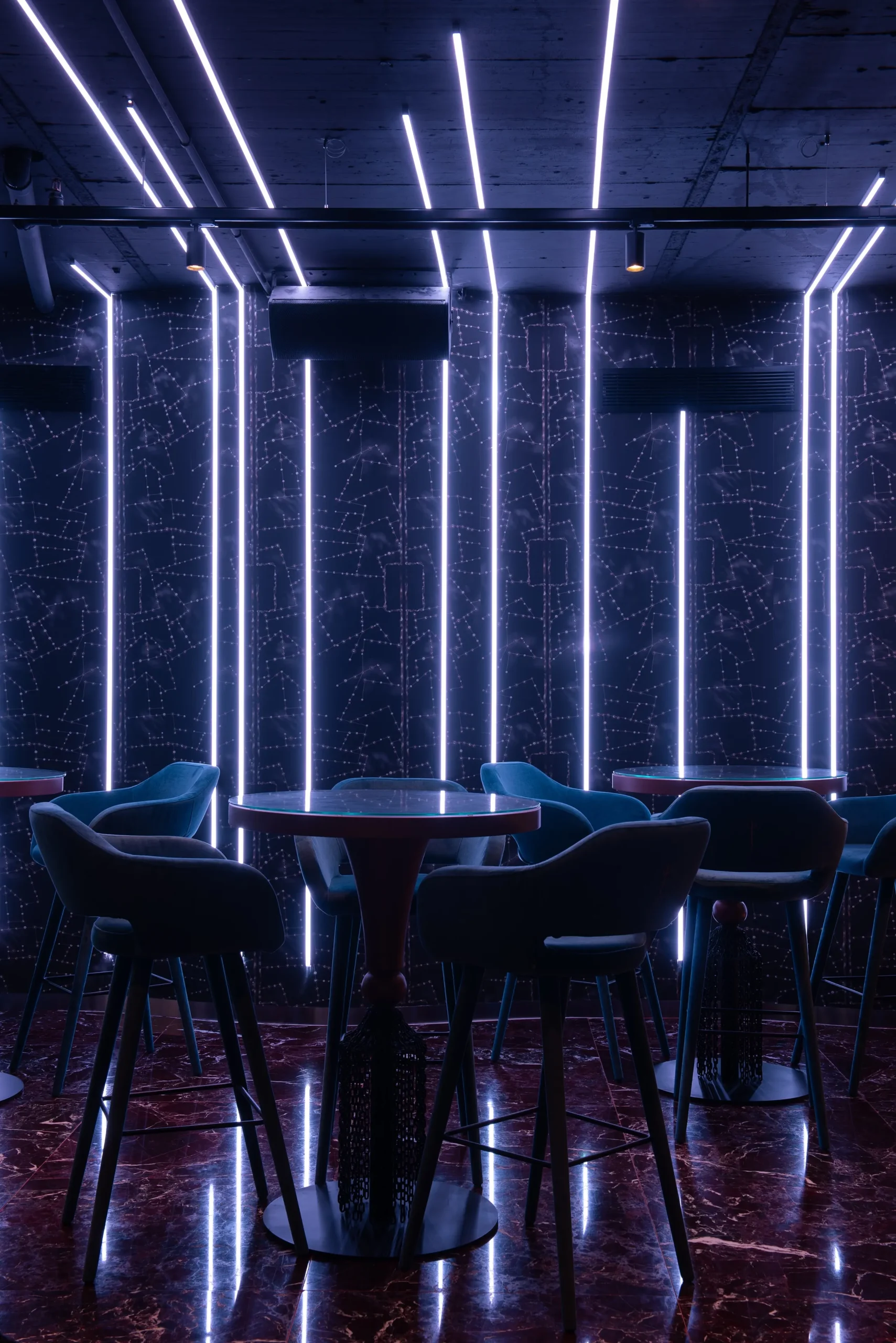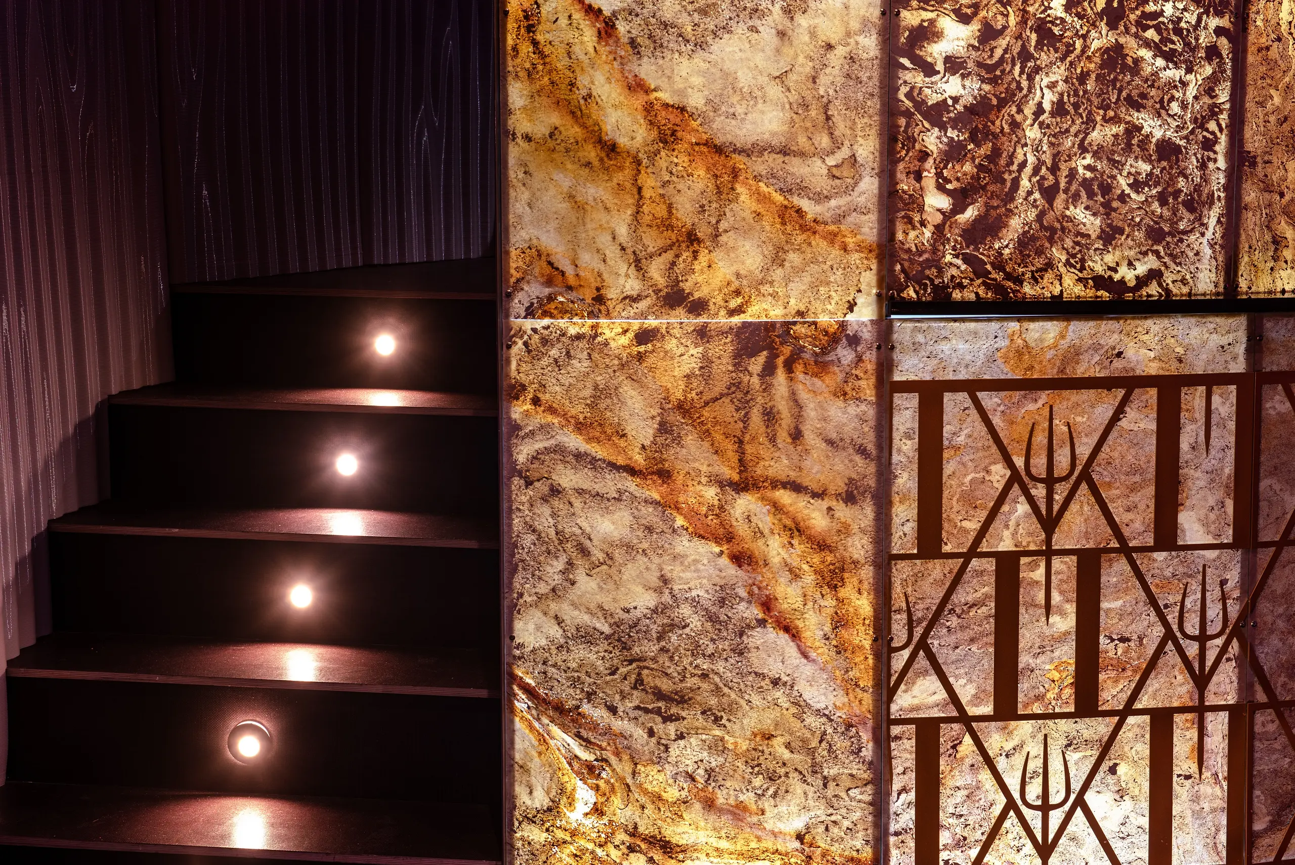 Luz diseñada para reforzar carácter, ambiente y lectura material del espacio, equilibrando atmósfera y funcionalidad.