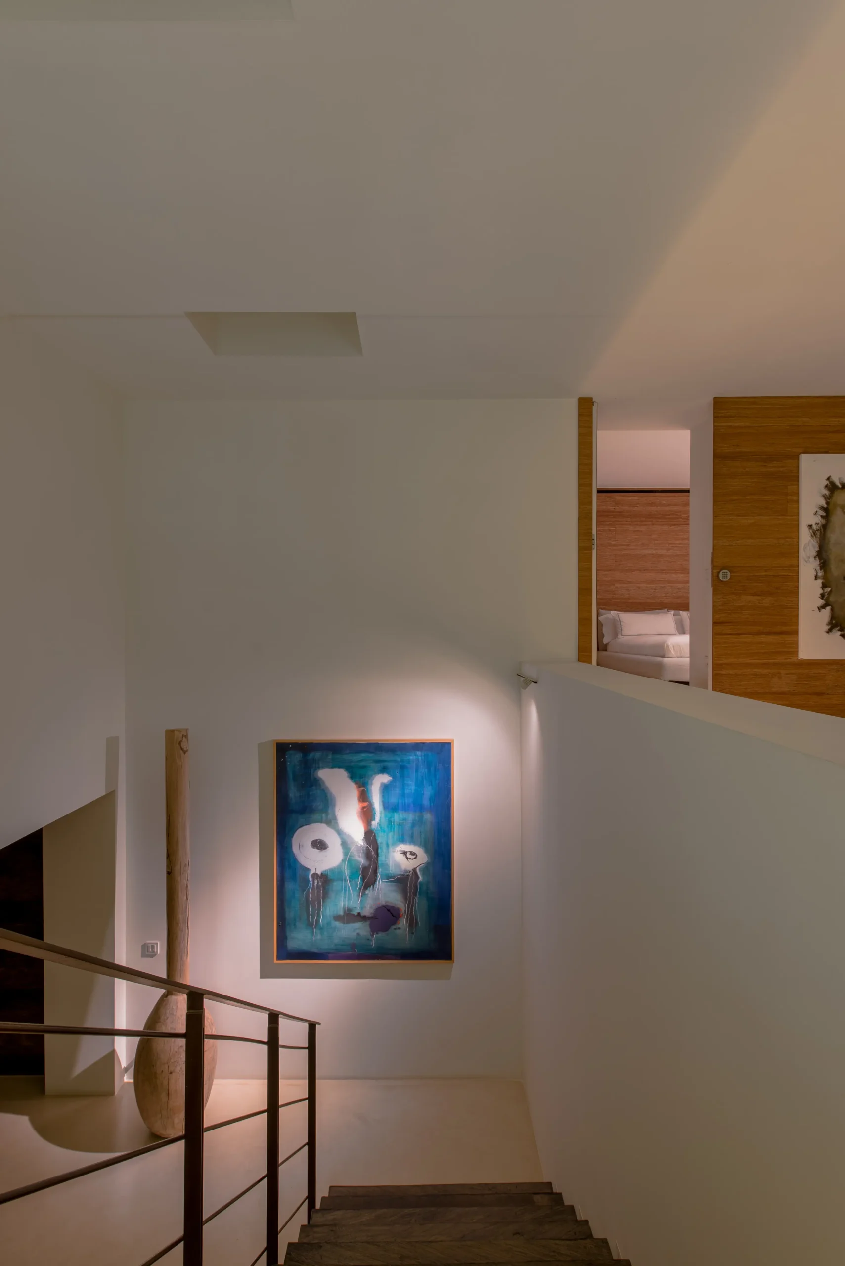 Integración de capas de luz cálidas, indirectas y de acento para construir una atmósfera confortable y depurada.
